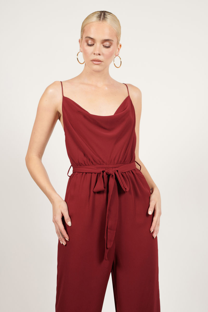 Cross The Line Cowl Neck Jumpsuit – Wine