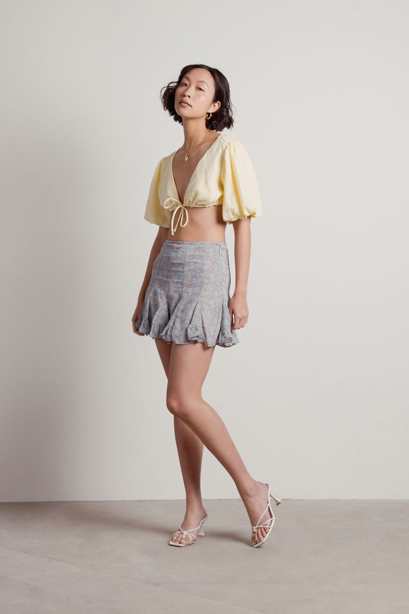 Look no further than the Look This Way Lavender Floral Skirt. This best-selling floral mini skirt is fully lined and features a flared hem plus an invisible line zipper closure. Pair this printed skirt with a bra top and sneakers in the spring, or a cropped sweater and ankle boots in the fall.